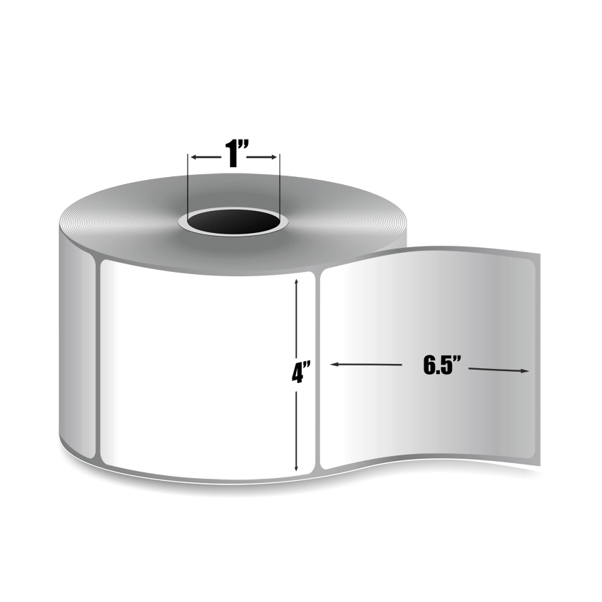 This 4" x 6.5" White Thermal Transfer label comes on a 1" core with a 4" outer diameter. There are 16 rolls per box and 230 labels per roll.