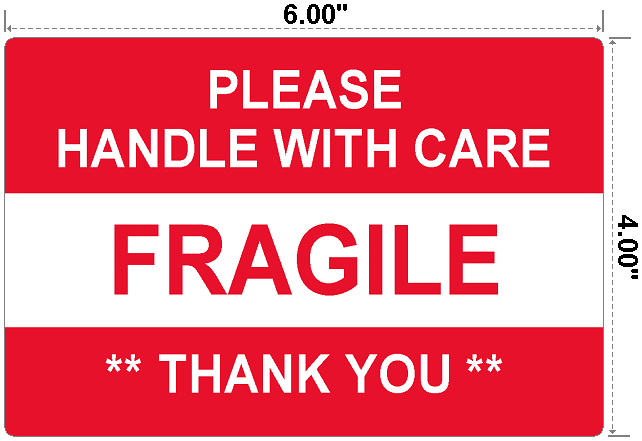Kroy's Fragile Shipping Labels help your package arrive to its destination without damage. They identify and alert handlers about the fragile contents by broadcasting the information in an eye-catching red. Postal carriers, recipients and others involved in the process will be properly informed so they can keep your property safe. These preprinted labels help protect your valuable inventory and shipments. Label is printed with "FRAGILE " This item comes with four rolls to a box for a total of 2,000 labels. The label is a standard 4x6 size