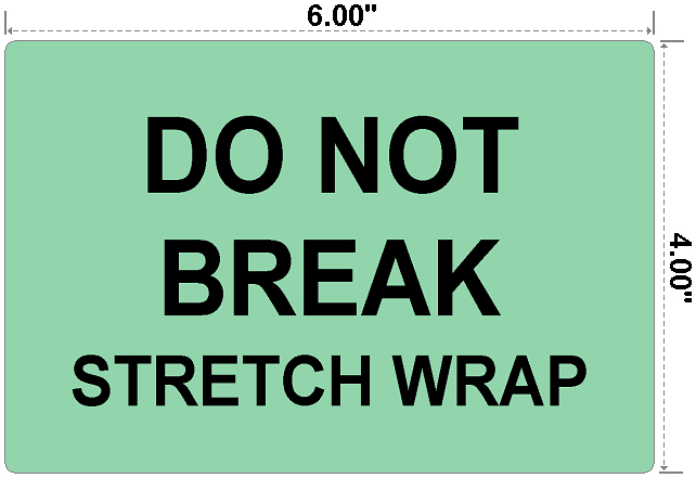 Preprinted labels to help protect your shipments. Label is printed with "DO NOT BREAK STRETCH WRAP" with black text on a green label. This item comes with four rolls to a box for a total of 2,000 labels. The label is a standard 4x6 size.