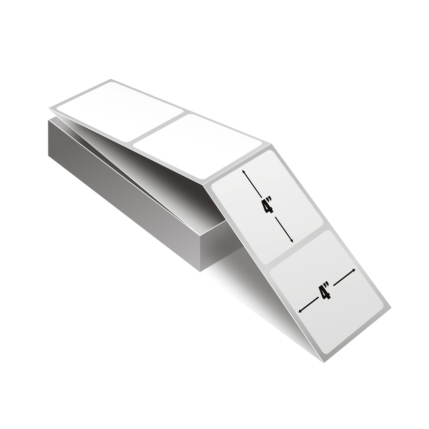 This 4" x 4" White Thermal Transfer label is fanfolded. There are 6000 labels per box.